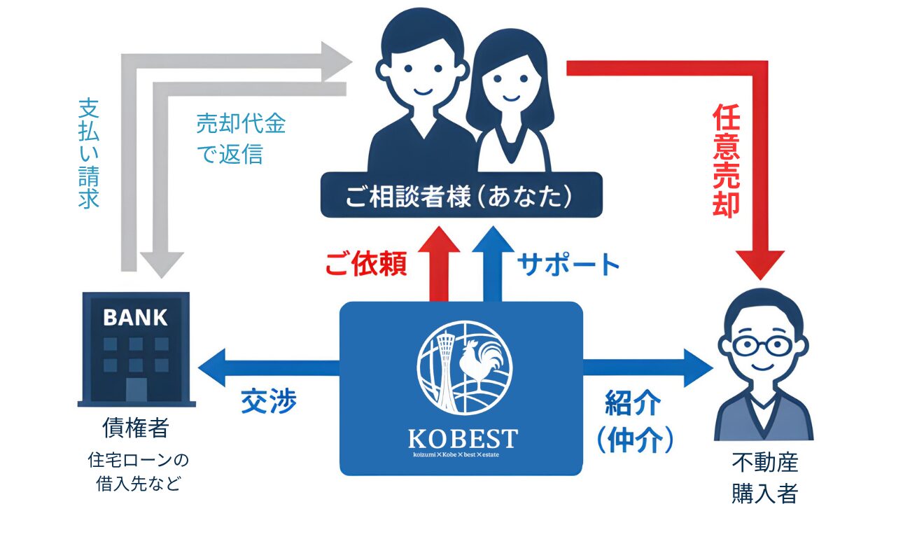 住宅ローンなどの返済が、さまざまな事情によって難しくなった際に、競売のような強制的な売却ではなく、ご本人の意思で不動産を売却し、その売却代金を債務の返済に充てる方法です。